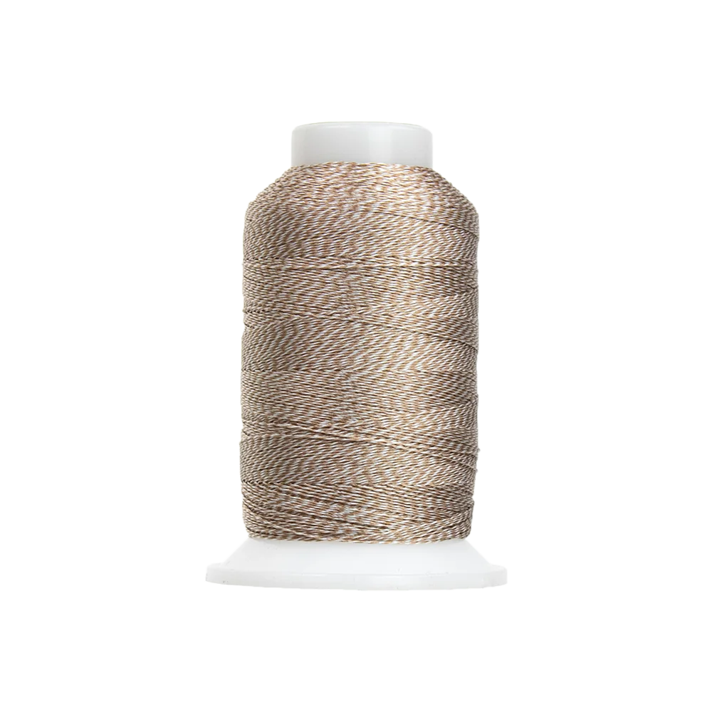 D-Twist™ combines two 40wt rayon threads twisted into a single 20wt thread, creating a 3-D textured effect and a striking two-tone sheen for standout stitching.