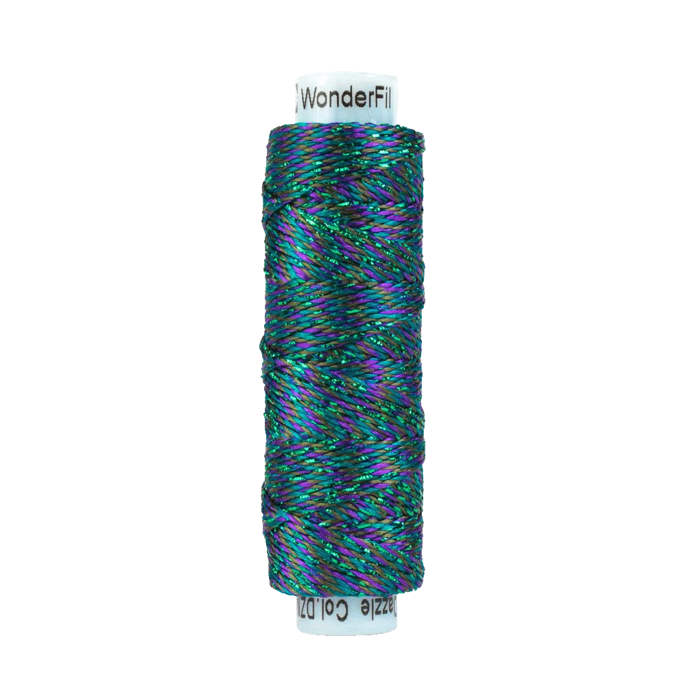 Yes, it mimics the thickness and texture of a #8 perle cotton, but its rayon finish with a strand of metallic gives the thread more sheen and pop.Can I use Dazzle™ in my sewing machine?