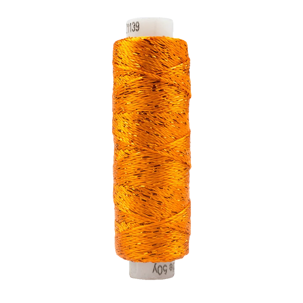 A sturdy 6-ply thread, Dazzle™ is comparable in weight to a #8 perle cotton. This is 100% rayon and metallic mix carries a naturally bright lustre with a silky finish, making it an excellent choice for crafts, crochet, knitting, and highlighting the details on dimensional stitches. Because of Dazzle’s™ light reflective properties and “pop” of metallic, the detail on wool appliqué and layering can be enhanced with edging stitches for that extra sparkle.